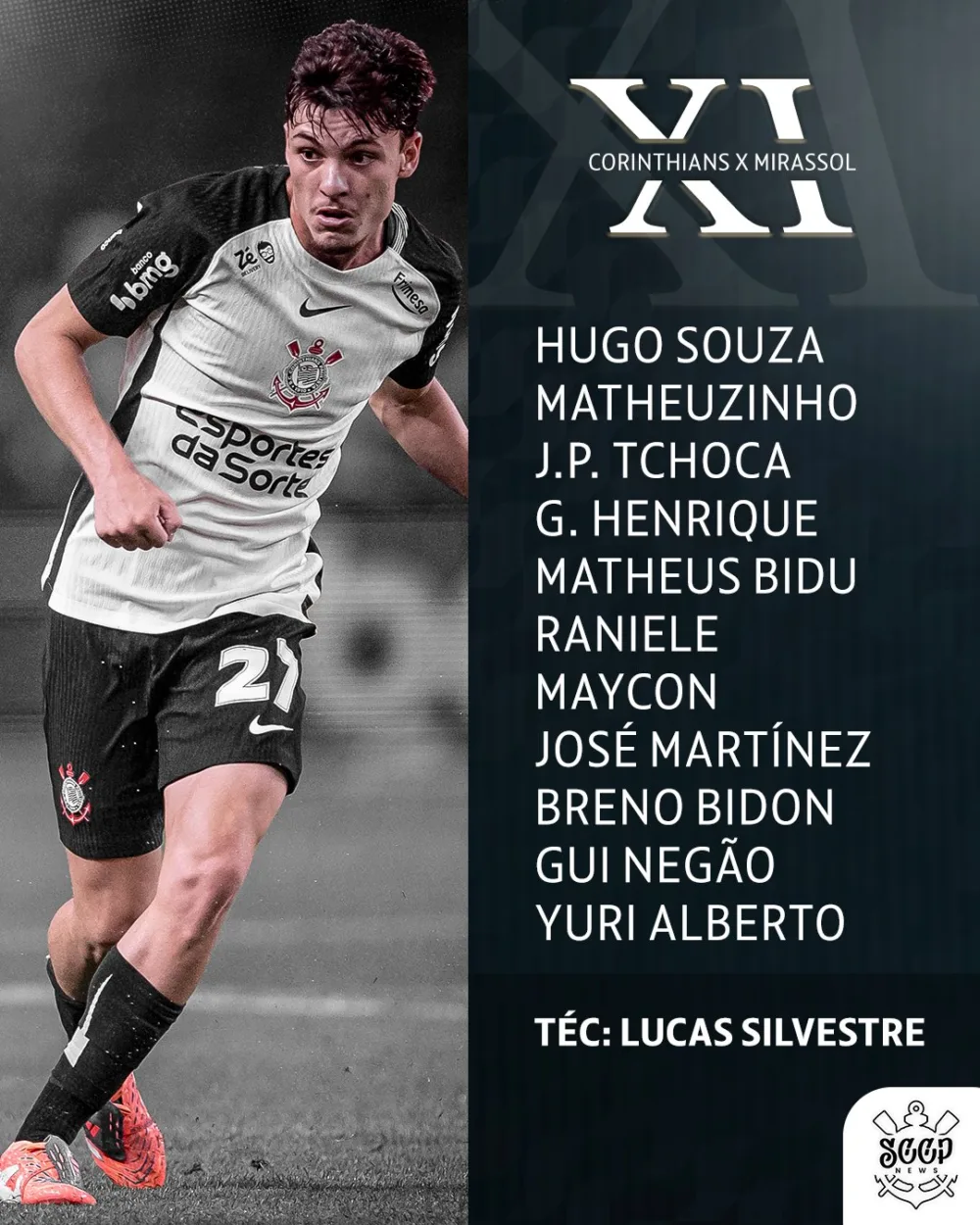Corinthians: Hugo Souza; Matheuzinho, João Pedro Tchoca, Gustavo Henrique e Matheus Bidu; Raniele, Maycon, José Martínez e Breno Bidon; Gui Negão e Yuri Alberto.