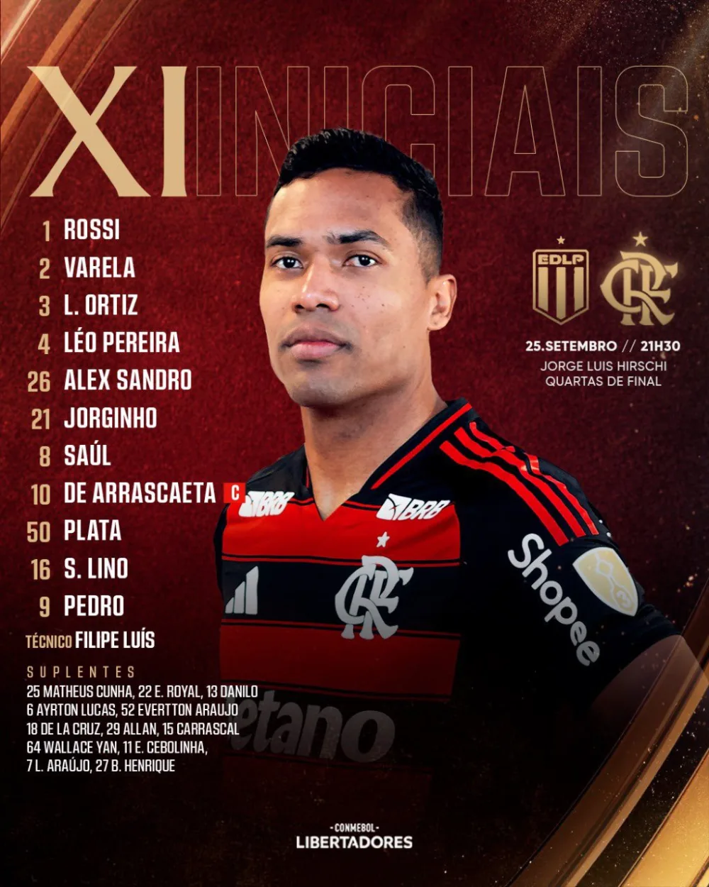Após a vitória por 2×1 no Maracanã, o Rubro-Negro precisa apenas de um empate para garantir vaga na semifinal da competição continental. O técnico Filipe Luís aposta em força máxima, contando com o retorno de Jorginho e a manutenção de sua base titular.