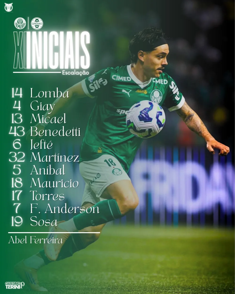 O Palmeiras terá uma formação alternativa diante do Grêmio. Abel Ferreira optou por não relacionar 11 jogadores considerados titulares, preservando-os para a grande decisão da Libertadores contra o Flamengo.