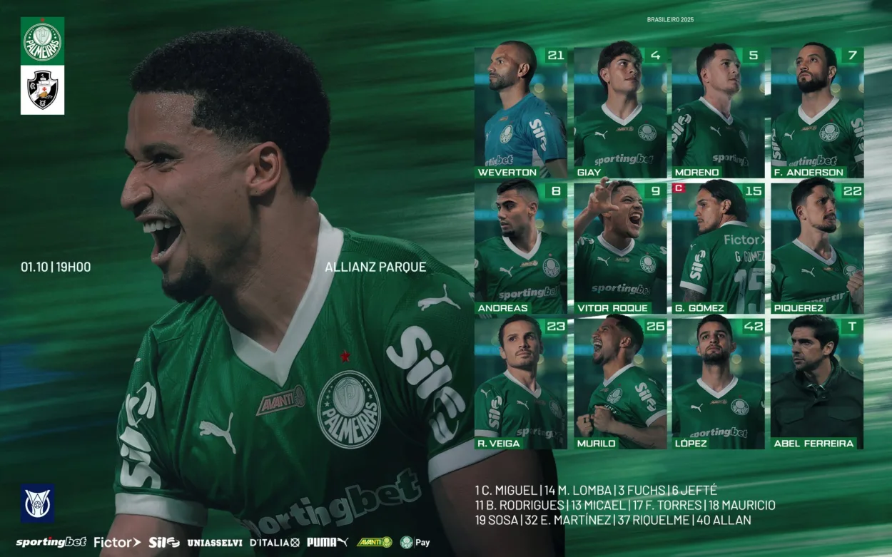 Defensivamente, Abel busca consistência com a dupla Murilo e Gustavo Gómez, responsável por conter as investidas do Vasco, que aposta em contra-ataques rápidos. A pressão alta e a posse de bola devem ser as armas do Verdão em casa.